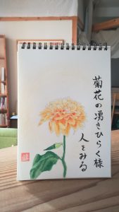 今月の絵手紙。いただいた菊の花から