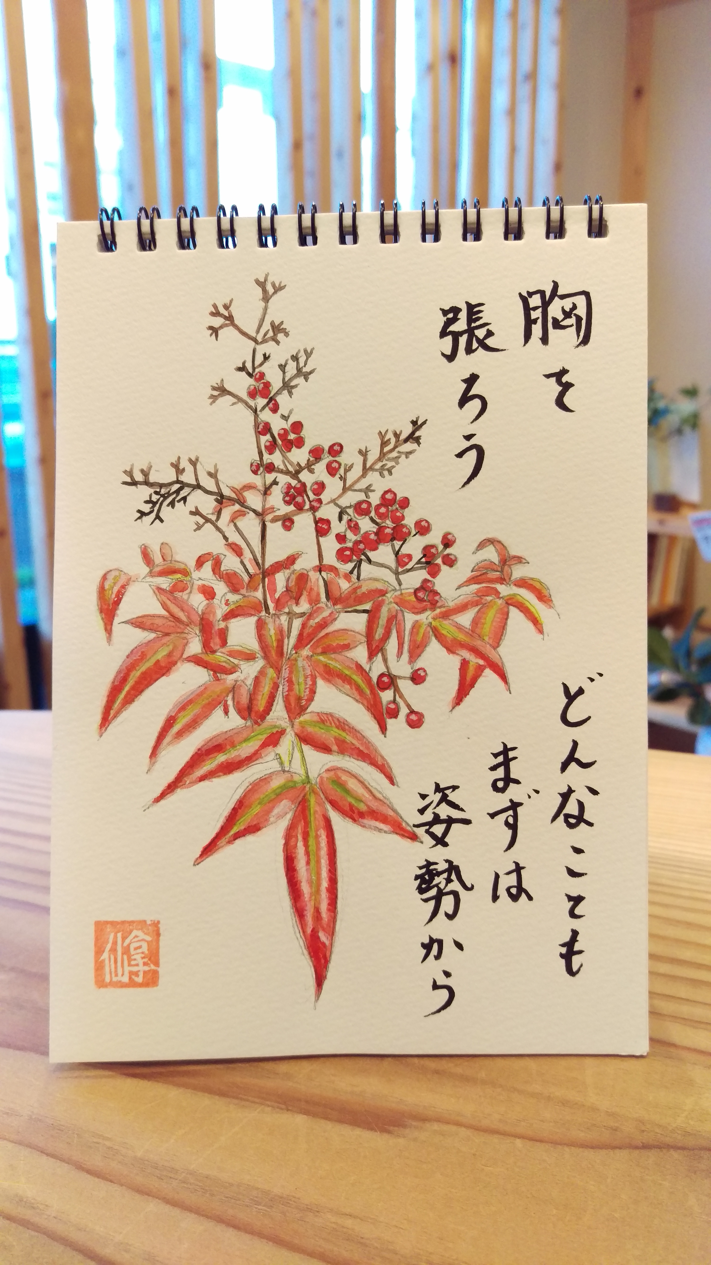 絵手紙”南天” 「 胸を張ろう 」